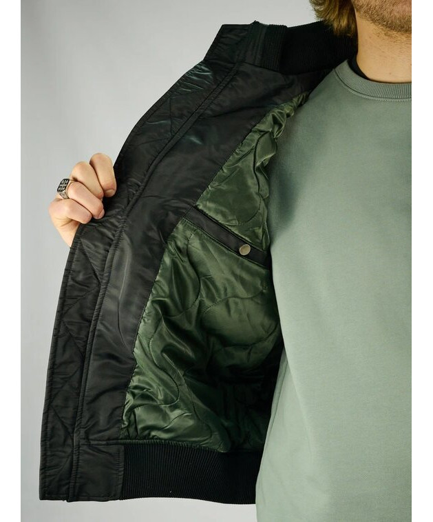 Низ изделия выполнен из высококачественной хлопковой очень плотной резинки с добавлением эластана, также как и манжеты. Не истираются, не растягиваются. На груди интересный плоский, карман на молнии, два врезных удобных кармана на кнопках. Внутренние карманы для документов. Бомбер застёгивается на металлическую крупную молнию SBS. Продуманностей деталей, высокое качество, надёжная фурнитура от лидера мирового рынка SBS.