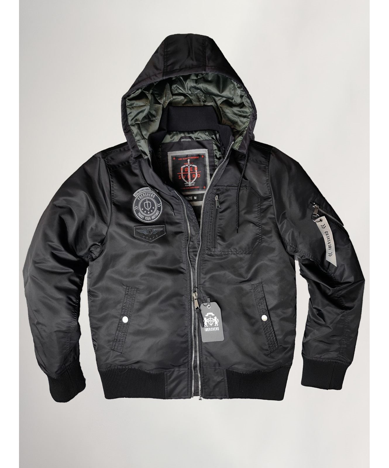 Капюшон легко отстегивается, на молнии. Две модели : с патчами и лаконичная модель без патчей.